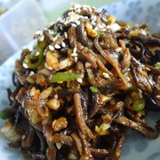茄子干、葱花、蒜末、盐、酱油、辣椒油、味精、熟芝麻。