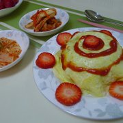 米饭、玉米、豌豆、辣椒、胡萝卜、鸡蛋、草莓、盐、酱油、多味香粉、番茄酱。