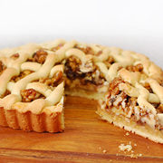 低筋面粉、糖粉、杏仁粉、鸡蛋、盐、黄油、内馅、核桃、葡萄干、细砂糖、牛奶、蜂蜜、朗姆酒、全蛋液。