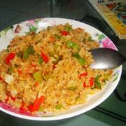 剩米饭、苦瓜、青辣椒、红辣椒、番茄。