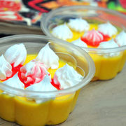鸡蛋、牛奶、吉利丁、水果、奶油。