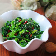 菠菜、花生米、白芝麻、蒜、干辣椒、盐、鸡精、香油、白醋。