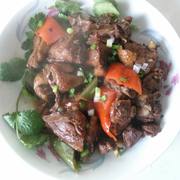 新鲜鸭肉、橄榄油、啤酒、蒜、葱、姜、青椒红椒、干红椒、香菜、老抽、盐。