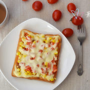 面包片、玉米、小番茄、培根、马苏里拉奶酪、亨氏番茄酱、橄榄油。