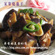 茄子、葱、蒜、青椒、盐、酱油、糖、鸡精。