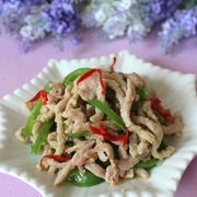 面筋丝、猪肉、青椒、油、盐、味精、辣椒、蒜、蛋青、料酒。