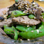 羊肝、青椒、洋葱、姜、大蒜、盐、酱油、糖、醋、孜然、鸡精、花椒粉。
