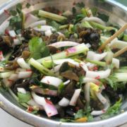 干木耳、小香菜、香芹、洋葱、西芹、青柠檬、盐、味精、白醋。