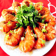 大虾、番茄沙司、植物油、葱、姜、番茄沙司、白糖、醋、盐、料酒、水淀粉。