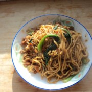 面条、西红柿、油菜、大蒜、豆油、蚝油、老抽、盐、糖、味素。