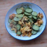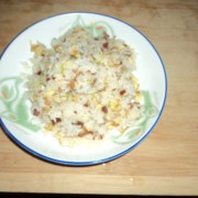 剩米饭、黄瓜、香肠、乌鸡蛋、葱、盐、味素。