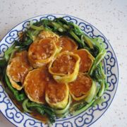 鸡蛋、猪肉馅、小白菜、胡萝卜、盐、调馅王、淀粉、玉米油、葱姜、鸡粉、料酒、白糖。