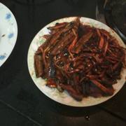 鳝丝,茭白、盐,糖,生抽,老抽,醋,黄酒、白胡椒粉,蒜泥,姜,生粉,猪油,麻油。