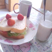面包片、西红柿、酸黄瓜、生菜、肠子。