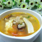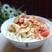 番茄、鸡蛋、香菇、瘦肉、油、盐、葱、生抽、淀粉。
