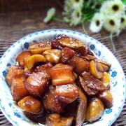 五花肉、板粟、冰糖、桔子皮、姜、蒜、老抽、盐。