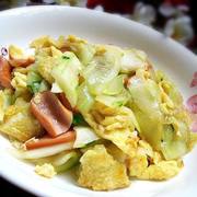 青瓜、鸡蛋、脆皮肠、油、蒜、盐。