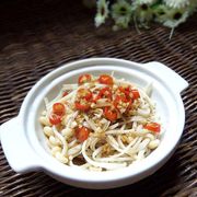 金针菇、指天椒、油、蒜、盐、醋、生抽、芝麻油、花椒油、花椒粉、糖。