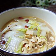 千张、娃娃菜、油、干辣椒、酱油、盐、花椒、鸡粉、芝麻油、蒜。