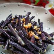 豇豆、蒜、辣椒油、芝麻油、花椒油、生抽、盐。