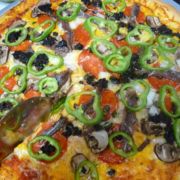 面粉、酵母粉、白糖、盐、水、青椒、意大利香肠、奶酪、黑橄榄、金枪鱼。