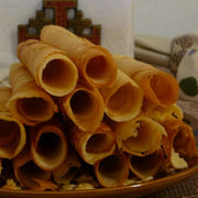 黄油、洋葱、干果、面包屑、鸡蛋、蛋黄、香蒜沙司、春卷皮、豆蔻粉、罗勒、黑胡椒、盐。