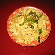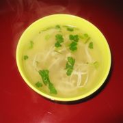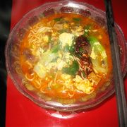方便面、小油菜、蘑菇、鸡蛋、香菜末、自制香干、方便面调料、盐、老陈醋、香油。