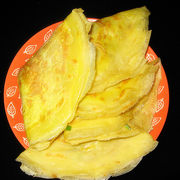 鸡蛋、玉米面粉、普通面粉、榨菜、香菜、香葱、花生碎、黄豆酱、盐、花椒粉。