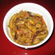 茄子、西红柿、青辣椒、葱、蒜、盐、花椒粉、鸡精、味精、酱油。