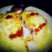 米饭(最好是剩饭)、虾仁、鸡蛋液、火腿、洋葱切丁、盐、胡椒粉、番茄酱。