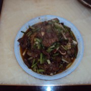 猪肉、蒜苔、姜、豆鼓、盐巴、味精、鸡精、花椒、酱、老抽、油。