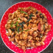 鸡蛋、面粉、牛奶、红豆、德芙巧克力、饼干、花生颗粒、白糖。