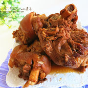 猪腿骨、炖肉调料、姜、老抽、料酒、盐、冰糖、生抽。