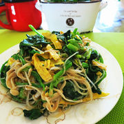 菠菜、金针菇、粉丝、鸡蛋、蒜泥、芝麻酱、芥末油、鲜味酱油、醋、盐。