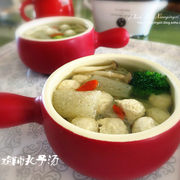 鸡脯肉、竹荪干、蟹味菇、西兰花、粉丝、蛋清、胡椒粉、枸杞子、橄榄油、调味鸡汁、盐。