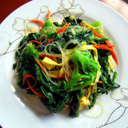 菠菜、鸡蛋、粉丝、胡萝卜、蒜泥、姜丝、调味料。
