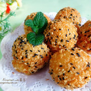 豆渣、糯米粉、白糖、土豆、香芹、胡萝卜、千岛汁沙拉酱、甜玉米粒、盐、面包糠、鸡蛋、黑芝麻、开水、黄油。