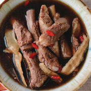 排骨、薑片、水、黃耆、當歸、川芎、熟地、黑棗、桂皮、陳皮、枸杞、鹽、米酒。