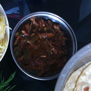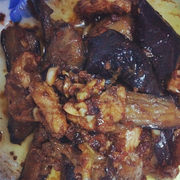 茄子、精肉、大蒜、生姜、豆瓣酱、盐、味素、花椒面。
