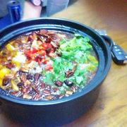 草鱼、黄豆芽、麻椒、花椒、料酒、鸡蛋、淀粉、葱、蒜、姜、五香油、香菜、豆瓣酱、火锅底料、盐、辣椒。