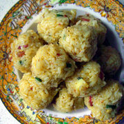糯米、腊肠、鸡蛋、姜、小葱、盐、花椒油、鸡精、玉米油。