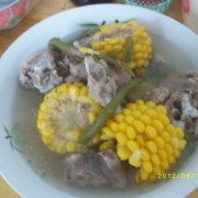 排骨、酸豆角、玉米、姜、蒜头、盐。