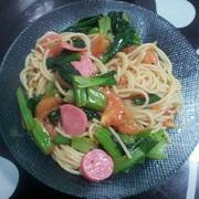 意大利面、油菜、番茄、糖、酱油、鸡精、盐。