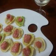 新鲜三文鱼、生菜、薯片、奶酪、法式面包球、意大利混合香草、白葡萄酒、盐、柠檬、百里香、黑胡椒。