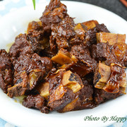 小牛排、盐、老抽、料酒、八角、桂皮、生姜、葱段、清水、蚝油、冰糖、水淀粉。