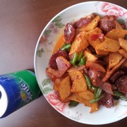 土豆、四川腊肠、洋葱、长角辣椒、小葱。
