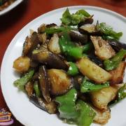 茄子、土豆、青椒、蒜、糖、盐、胡椒粉。