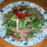 鸡腿、尖椒、香菜、大葱、精盐、鸡精、橄榄油、生抽。
