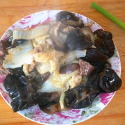 香菇、木耳、大白菜、瘦肉、精盐、鸡精、水淀粉、葱、姜、蒜。