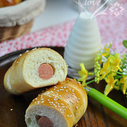 高筋面粉、低筋面粉、白糖、盐、酵母粉、鸡蛋、牛奶、黄油、香肠。